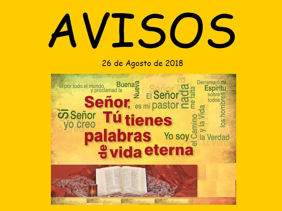 AVISOS del 26 de Agosto 2018 T.O. XXI de ciclo B.