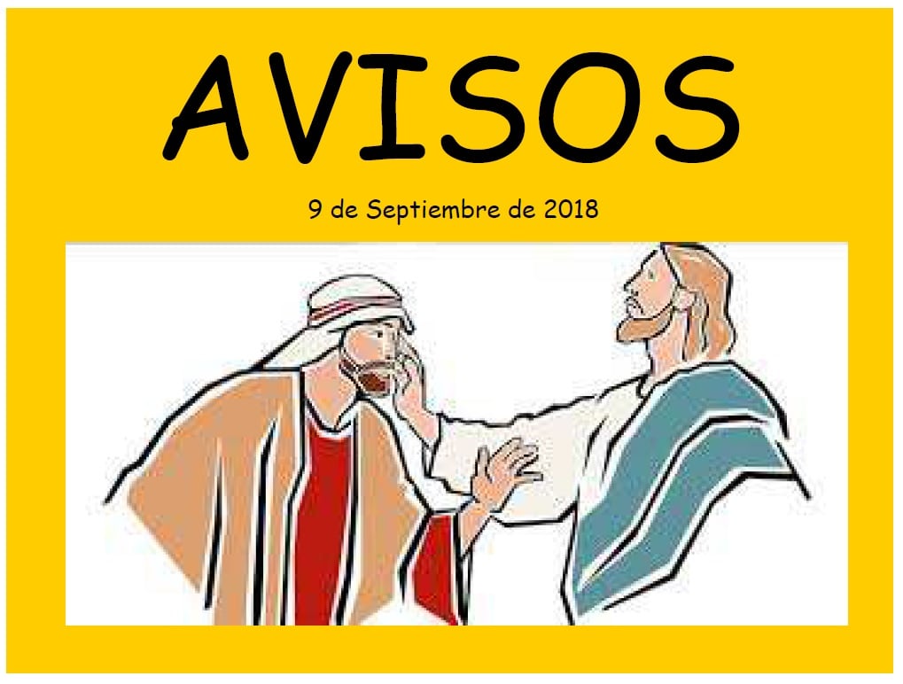 Cartel de la Oración del 24-09-2018 Todas las misas 9 de Septiembre 2018 T.O. XXIII de ciclo B SACRISTÍA AVISOS del 9 de Septiembre 2018 T.O. XXIII de ciclo B para SACRISTÍA